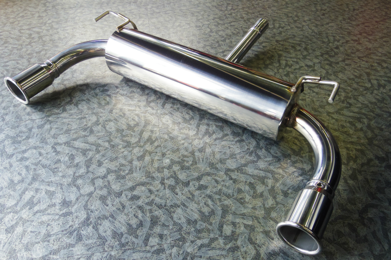 大径2本出しのマフラーエンドは純正のバンパー形状に収まり、フィッティングも計算し尽くしています。素材には美しさと耐久性に優れたステンレスSUS304を採用。