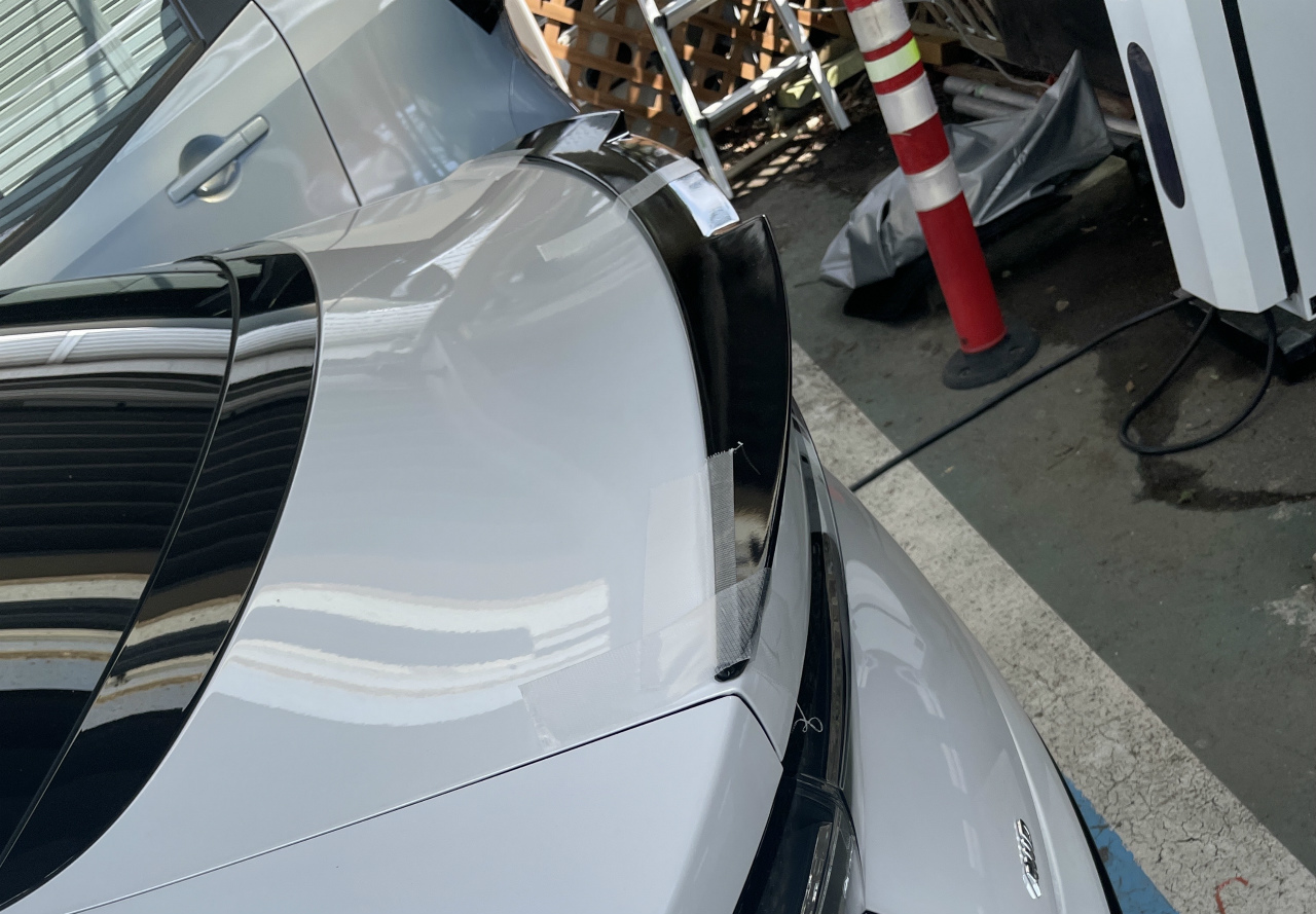 そして最後に大物パーツです。それはBYD シール専用のリアスポイラー! TEZZOお得意のセンターパートがえぐれたスタイリッシュなデザインで、試作品はFRPの無地ですが、素材やカラーなどはこれから詰めていく予定です。