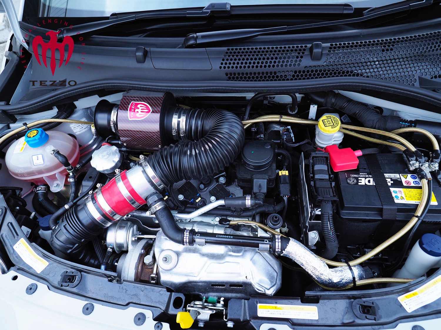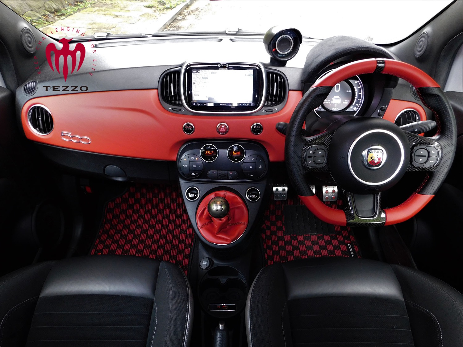 じゃじゃ馬的な楽しさがある595だが、そのようなハイスペックなアバルトをカスタムするにあたりTEZZOが心がけたのは、硬く、うるさい、スパルタンではなく、ECUチューン-DTT(デジテック by TEZZO)で大きくパワーアップしながらも、ドライバーとのコンタクトに関しては“クルマと格闘する”のではなく“クルマと対話する”ということだった。ショートホイールベース、ナロートレッドのアバルト 595をうまく躾けることを目指したのだ。